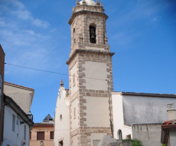 Ocupa el solar del antiguo oratorio islámico. La nave del templo se encuentra dividida en cinco tramos. El campanario construido a finales del siglo XIX, tiene tres cuerpos con troneras y pequeño remate, único en la Vall d’Albaida de estilo manierista. El exterior esta lucido en parte, aunque en las esquinas conserva la piedra original. Hay una cruz de hierro forjado en el extremo superior. Forma parte de la iglesia Parroquial de la Natividad del siglo XVII, y se sitúa a los pies de la nave, en la parte de la Epístola.
