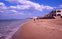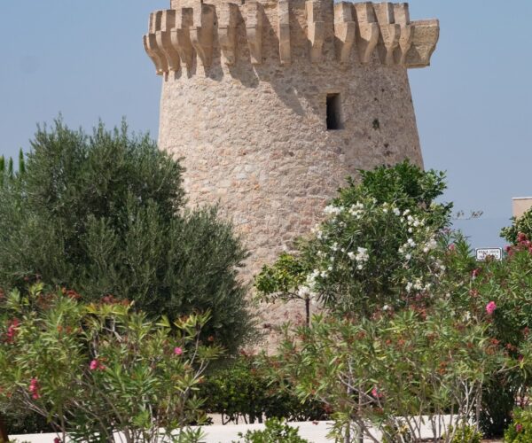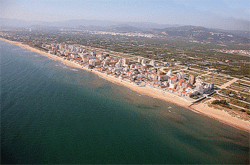 Torre de vigía en la costa, iglesia de Santa Bárbara, playa de arena dorada y preciosas dunas que, junto con la vegetación, dan al paisaje el aire exótico que posee la marjalería valenciana, entorno a la población hay abundancia de huertos de naranjos. Playa de Piles
